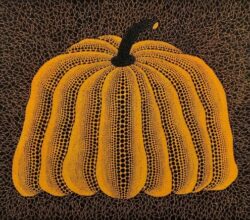 In praise of Kusama’s pumpkins. They first appeared in her paintings as a teenager and later in the 1990’s as sculptures. Now they are spreading around the globe. Their attraction to museums is obvious – immensely popular, non-controversial and having an authentic connection to the artist’s aesthetic. Her dotting emerged from childhood hallucinations while the “generous unpretentiousness” of the pumpkin is a kind of “self-portrait” for Kusama who cannot “[conform] to social standards”.