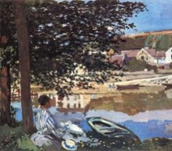Art history likes its categories. Reality is messy though, and painting movements emerge in fits and starts – as was the case with Impressionism. In the 1860’s Monet was closest to being an “impressionist”. Degas “flirted” with a classical style, Renoir was being “pretty”, Cezanne was “all over the place” and Courbet and Corot weren’t Impressionists at all. In 1868 Monet painted a modest work that highlighted reflections on a river. With hindsight, that may well have provided the “aha!” moment.